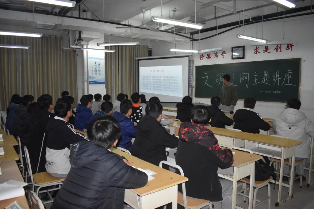 15日晚7:00,讲座正式开始。本次讲座先由主持人进行文明公约的讲解,让同学们认识到文明上网的重要性,接下来进行的是提问环节,同学们踊跃参与,积极回答,最后由同学们自由讨论自己对文明上网的了解,现场气氛十分热烈。