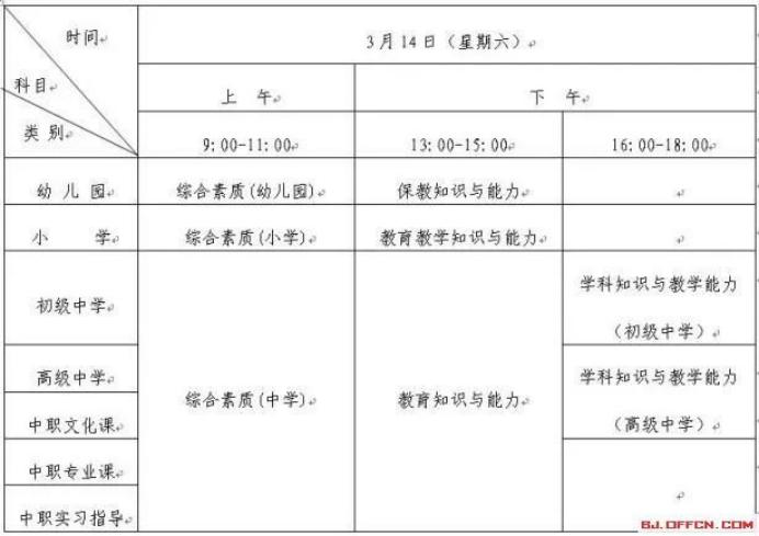 初级中学和高级中学学科知识与教学能力对应教育部课程标准中相应层次公司课程。按教育部考试中心总体部署,初级中学学科知识与教学能力科目分为语文、数学、物理、化学、生物、历史、地理、思想品德、英语、音乐、美术、体育与健康、信息技术、历史与社会、科学等15个学科; 高级中学学科知识与教学能力科目分为语文、数学、物理、化学、生物、历史、地理、思想政治、英语、音乐、美术、体育与健康、信息技术、通用技术等14个学科。其他学科暂不开考。