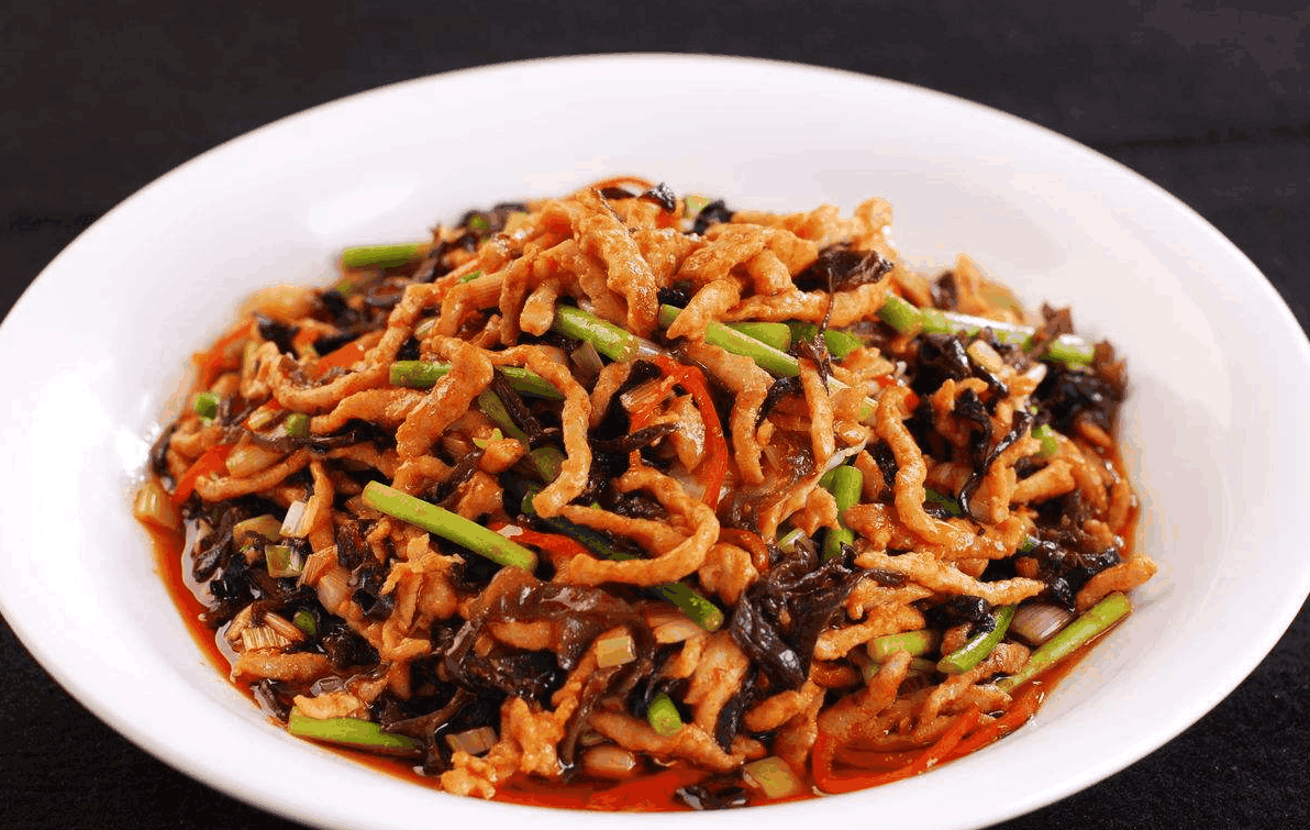 【鱼香肉丝】所需材料:猪里脊肉半斤、水发木耳1小碗、胡萝卜半根、尖椒2个、油盐适量、泡椒1汤匙、葱1段、姜2片、大蒜2瓣、白糖1汤匙、淀粉1.5汤匙、米醋2汤匙、酱油2汤匙、料酒半汤匙、鸡精1茶匙。
