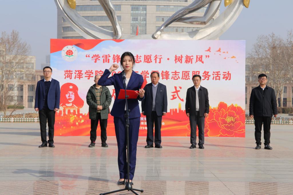 “我愿意成为一名光荣的志愿者......”青年志愿者代表傅晨雨带领全体师生庄严宣誓,铿锵有力的誓言响彻在广场,充分展现了新时代菏院青年践行志愿精神的决心。