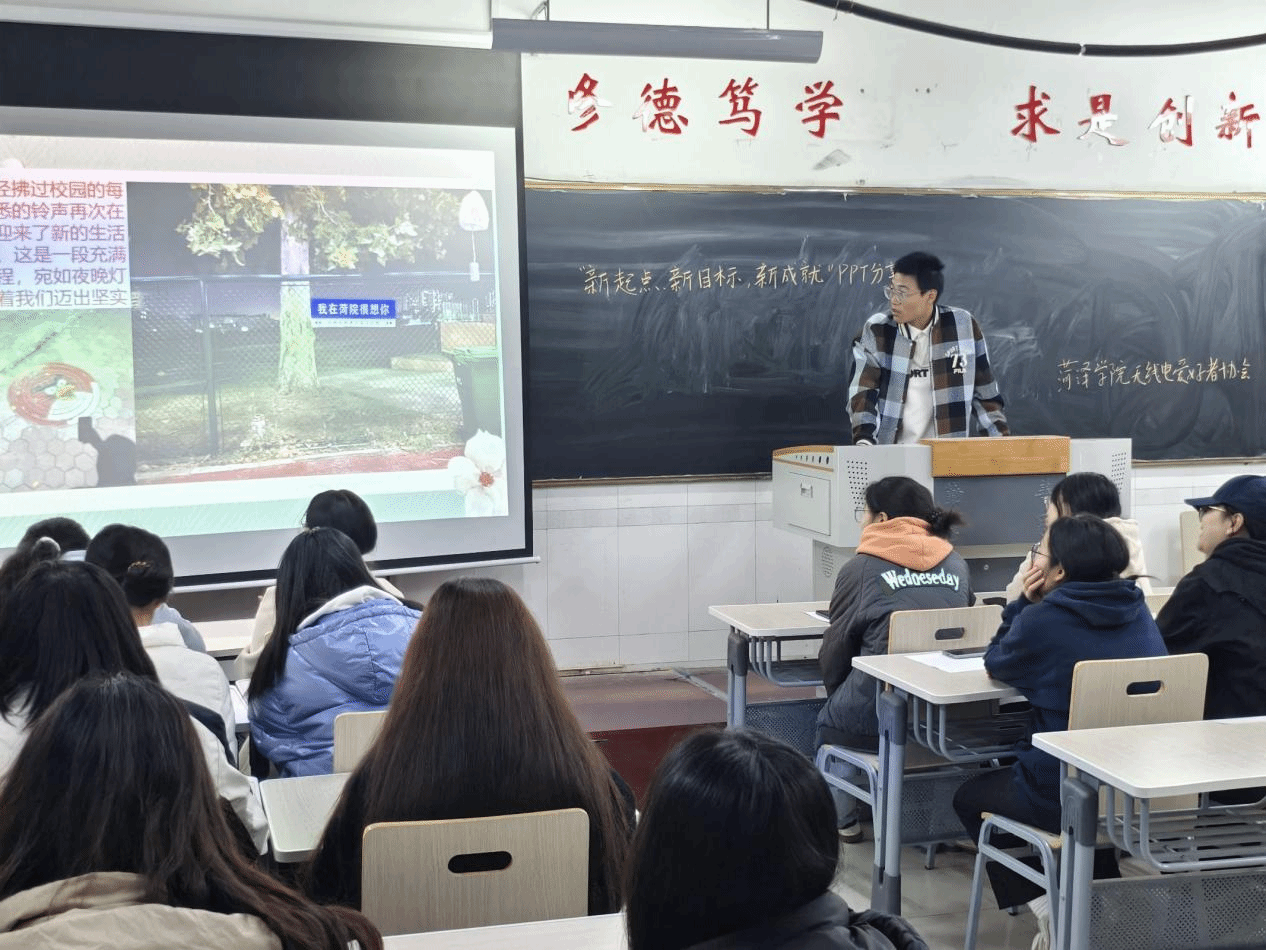 为了鼓励同学们借助PPT这一现代化工具,展示自己在校园中的学习和生活经历,11月9日,球盟会与无线电爱好者协会在综合实验楼W508教室共同举办了“新起点,新目标,新成就”PPT分享活动。